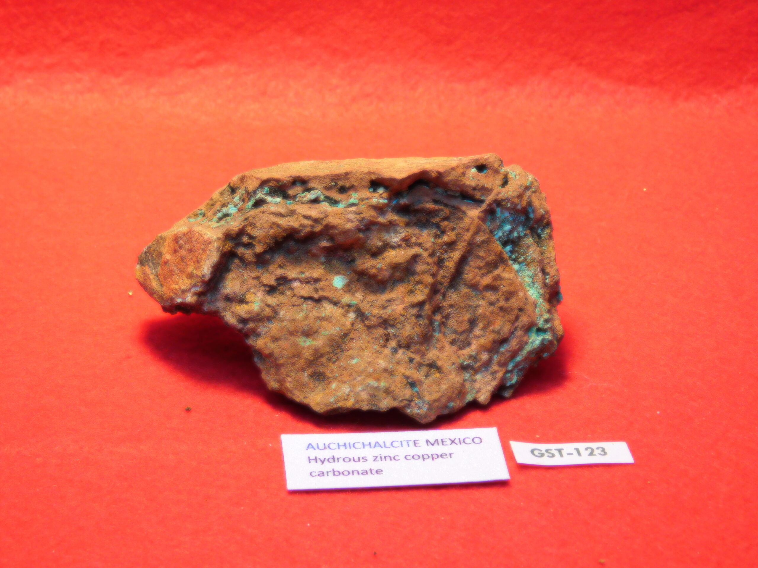 Aurichalcite is a carbonate mineral, usually found as a secondary mineral in copper and zinc deposits. Its chemical formula is (Zn,Cu)₅(CO₃)₂(OH)₆. The zinc to copper ratio is about 5:4.