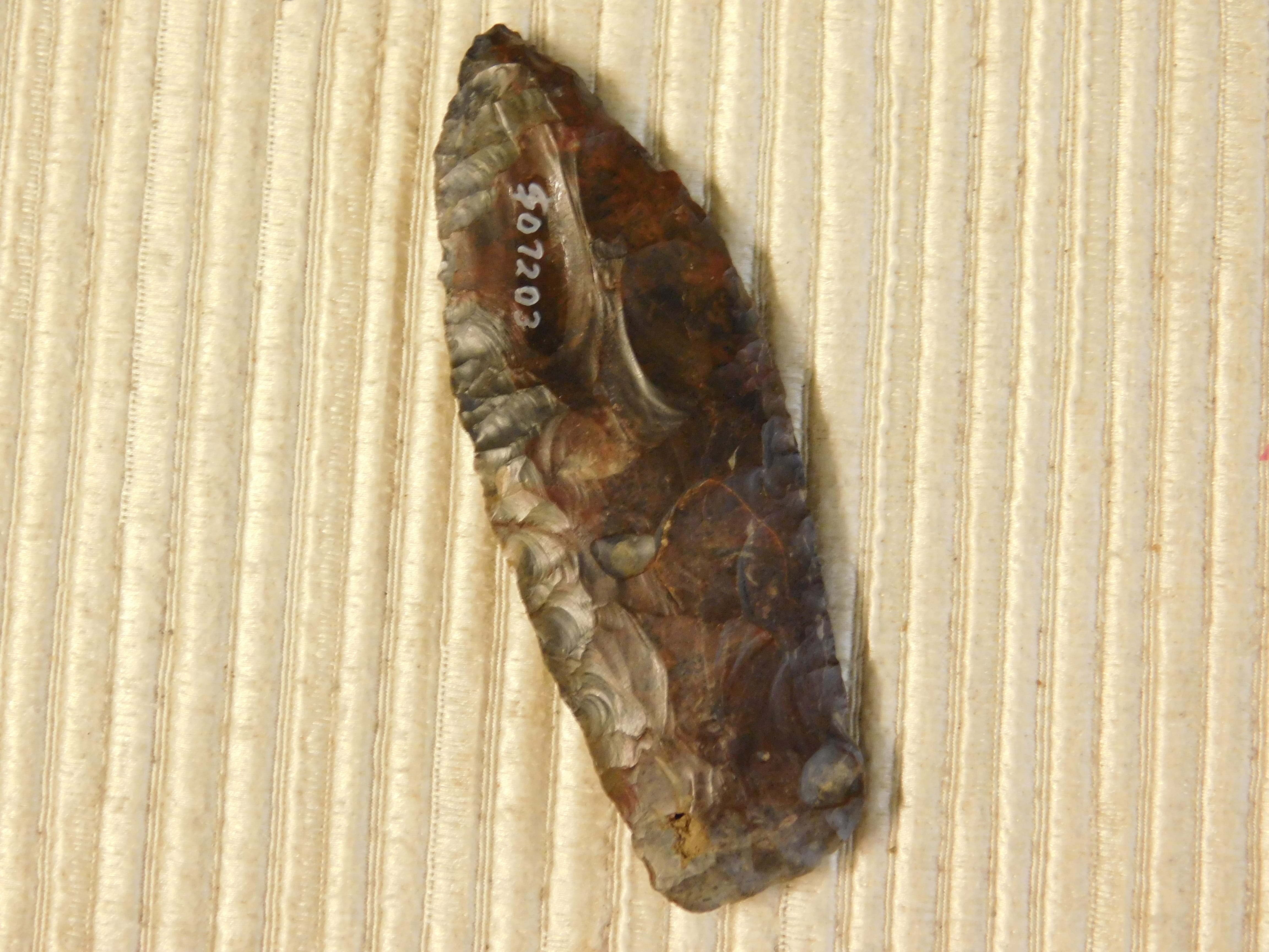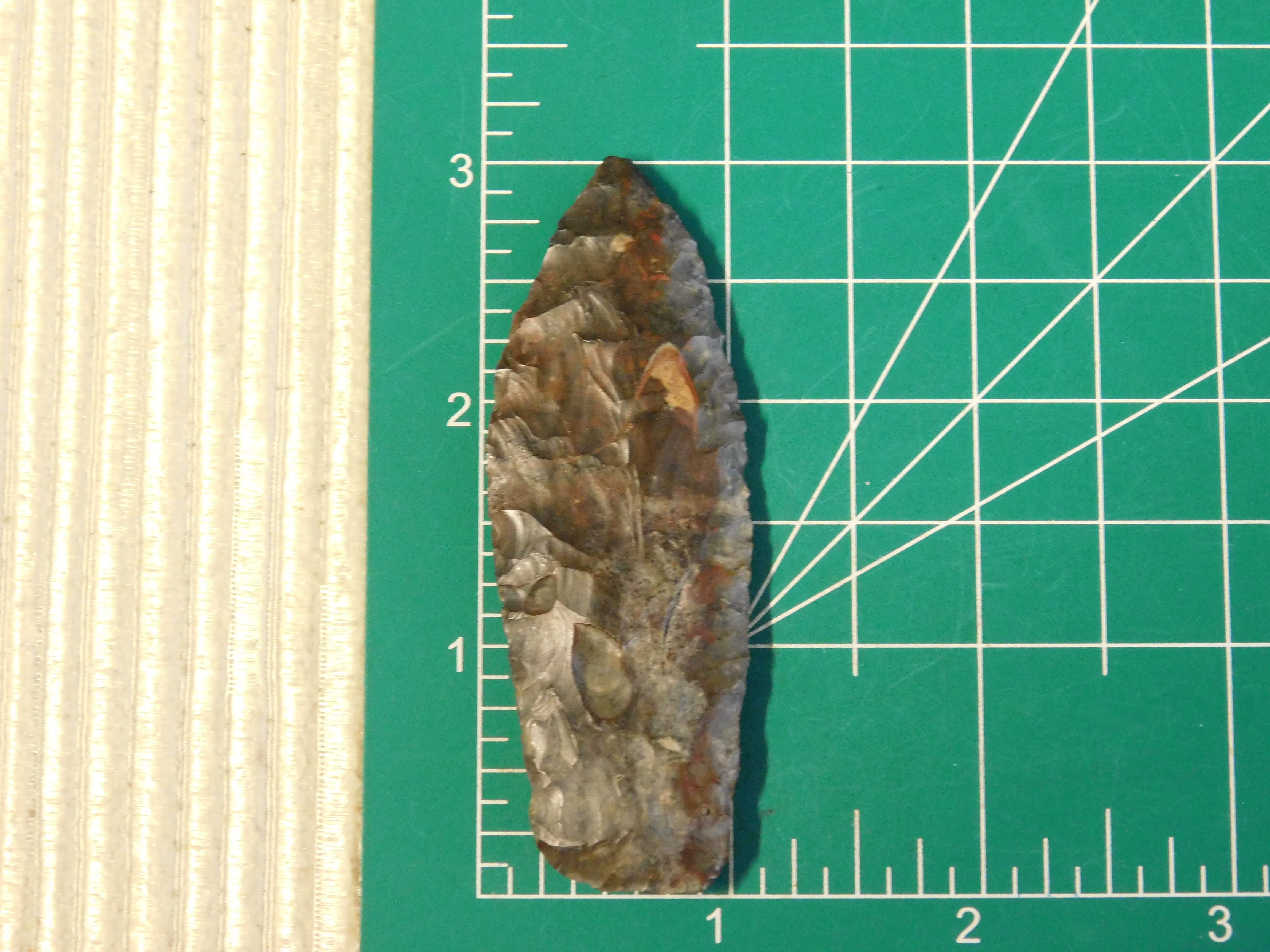 Authentic Artifact: Item Paleo Lanceolate Point. Certified by Bennet’s Artifact Authentication. Encoded Certificate #04L3AE48; Date of Evaluation: 11-19-24; Origin: Found in Ohio