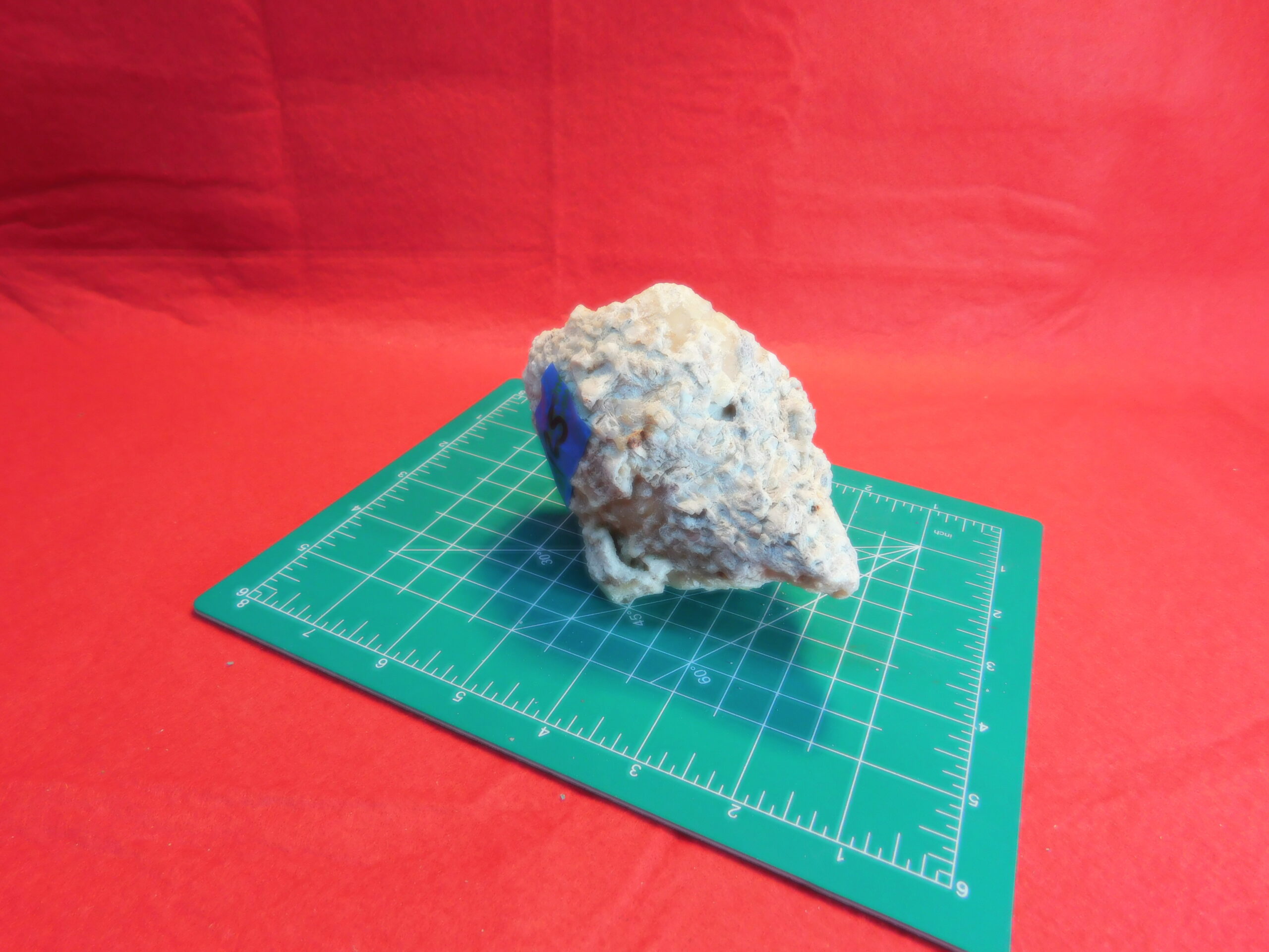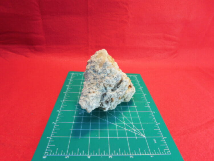 Face Large Calcified Shell Busycon carica knobbed Welk: Pleistocene Era, Found in Orlando, Florida. Mildly fluoresces yellow; Cross section Large; 4-1/2 x 3-3/4 x 3″ weight 1lb 8.95oz
