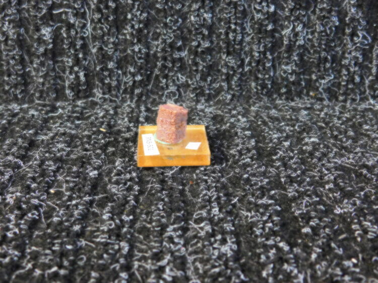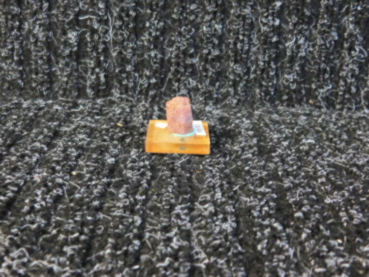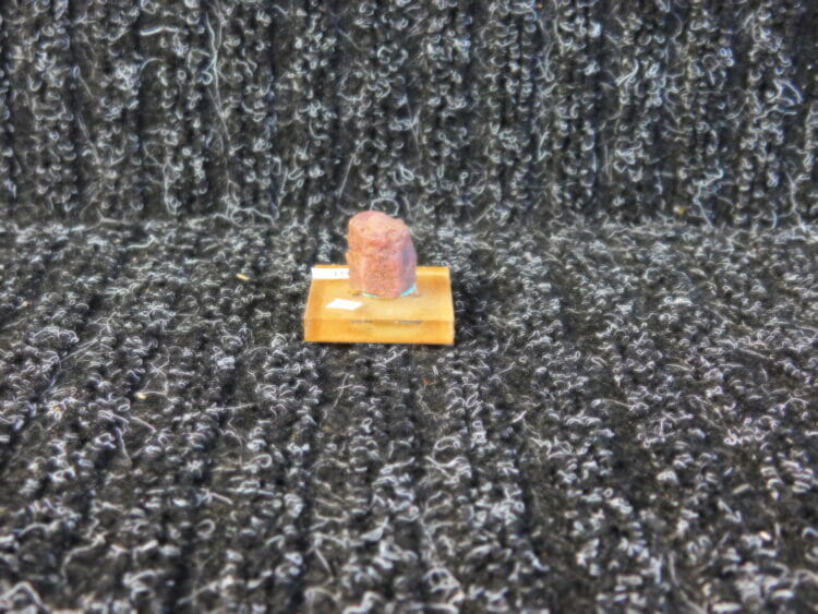 SAPPHIRE 9 grams; ROUGH CUT; MOUNTED ON 1″x 1″ LUCITE PLAQUE.