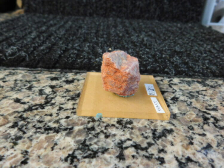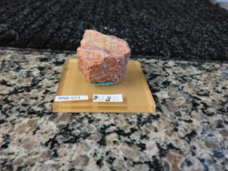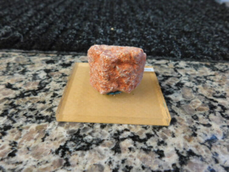 SAPPHIRE 73 grams; ROUGH CUT; MOUNTED ON 2″x 2″ LUCITE PLAQUE.